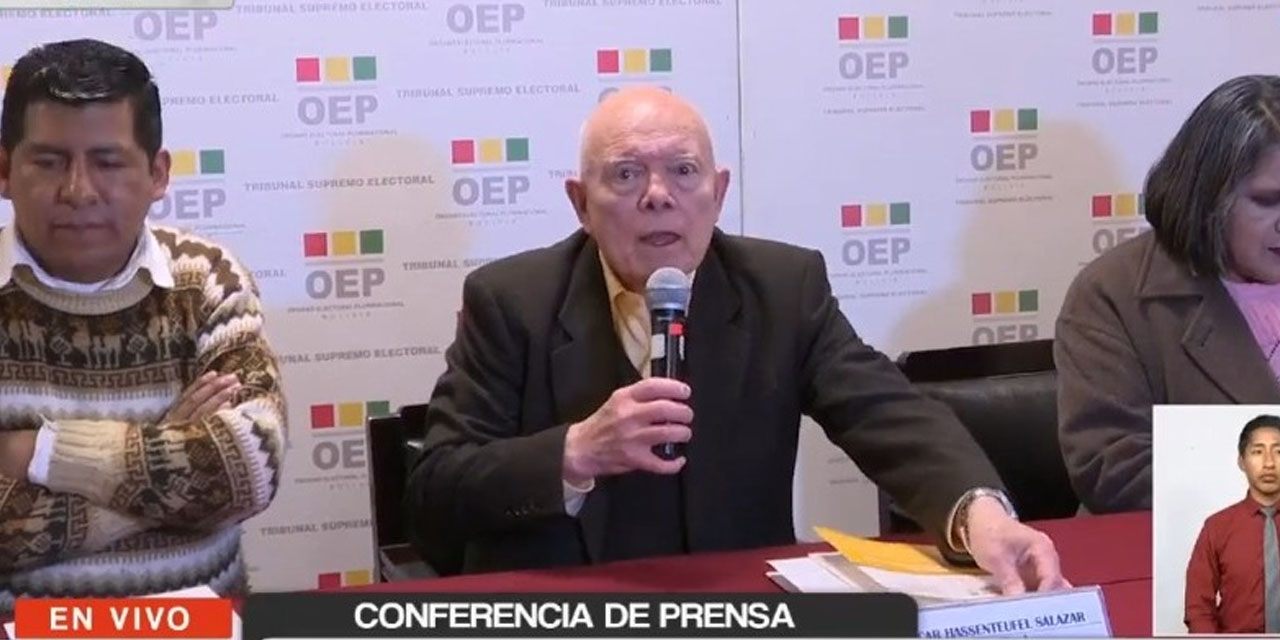 El presidente del TSE, Óscar Hassenteufel, junto a sala plena, lanzó la convocatoria para la elección de más de 5.000 autoridades de los gobiernos subnacionales, en un proceso que prevé, de darse el caso, una segunda vuelta en la elección de gobernadores.