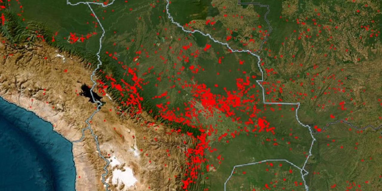 “Para el día de hoy, Bolivia registró 977 focos de calor: 530 en Santa Cruz; 320 en Beni; 51 en Tarija; 22 en Pando; 19 en La Paz; 16 en Potosí; siete en Oruro; siete en Cochabamba; y cinco en Chuquisaca”, detalló Calvimontes en conferencia de prensa.