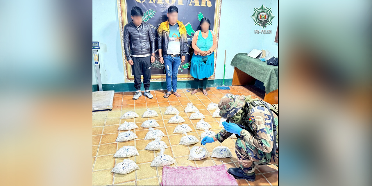 Tres personas fueron aprehendidas ayer por la Fuerza Especial de Lucha Contra el Narcotráfico (FELCN) en el trópico cochabambino por la comercialización de pasta base de cocaína.
