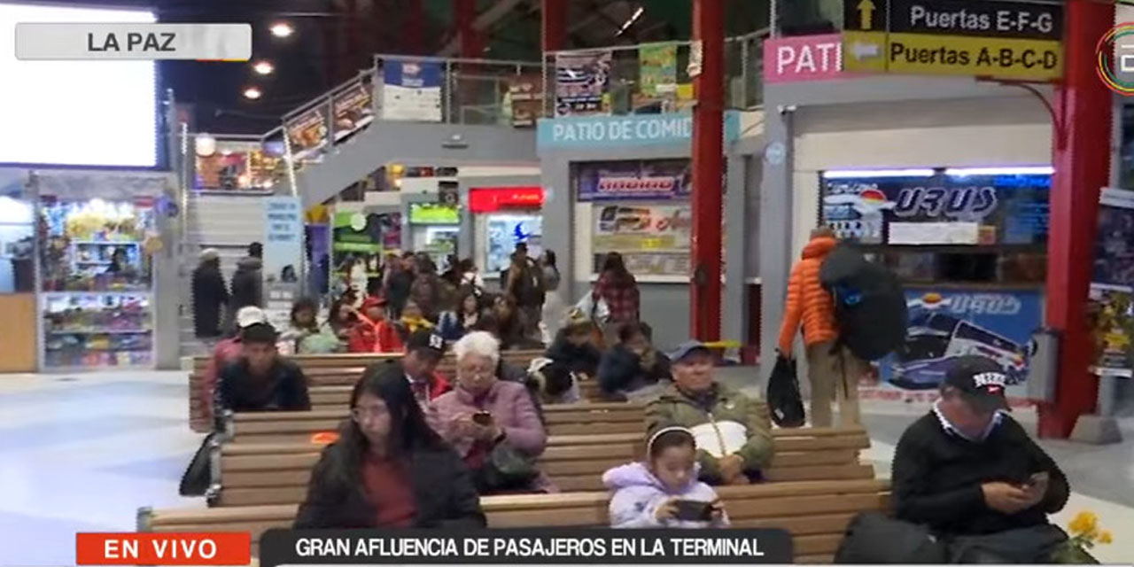 En la terminal de buses de La Paz se reportó una gran afluencia de pasajeros, mientras que las empresas de transporte interdepartamental incrementaron la cantidad de salidas disponibles.