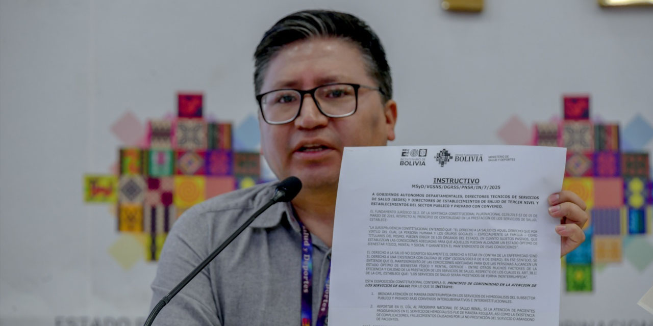 El Ministerio de Salud y Deportes reiteró este miércoles que los pacientes renales nunca dejaron de recibir atención gratuita y aclaró que los pagos a las unidades de hemodiálisis se realizan de manera cuatrimestral, conforme al procedimiento administrativo establecido, y no por mandato judicial.