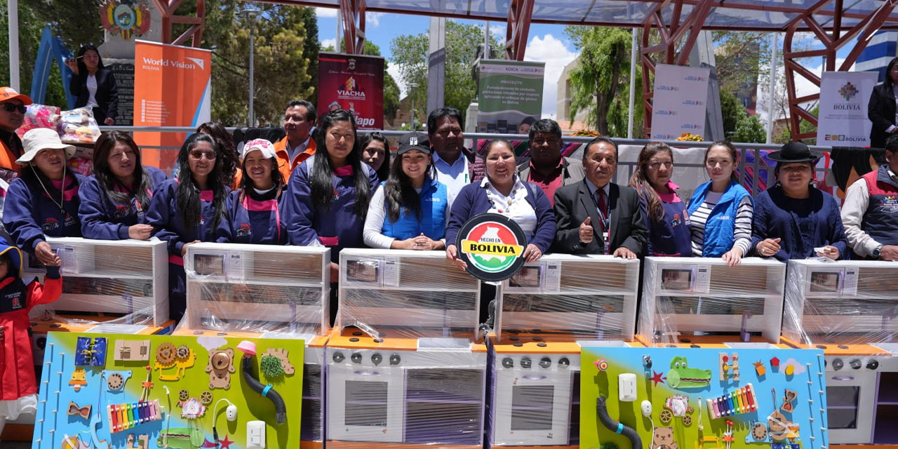 En un esfuerzo conjunto por impulsar el empoderamiento económico femenino, el Gobierno nacional, ONU Mujeres y la Agencia de Cooperación Internacional de Corea (Koica) entregaron ayer equipamiento a ocho centros municipales de cuidado infantil en el municipio de Viacha, con una inversión total de Bs 240 mil.
